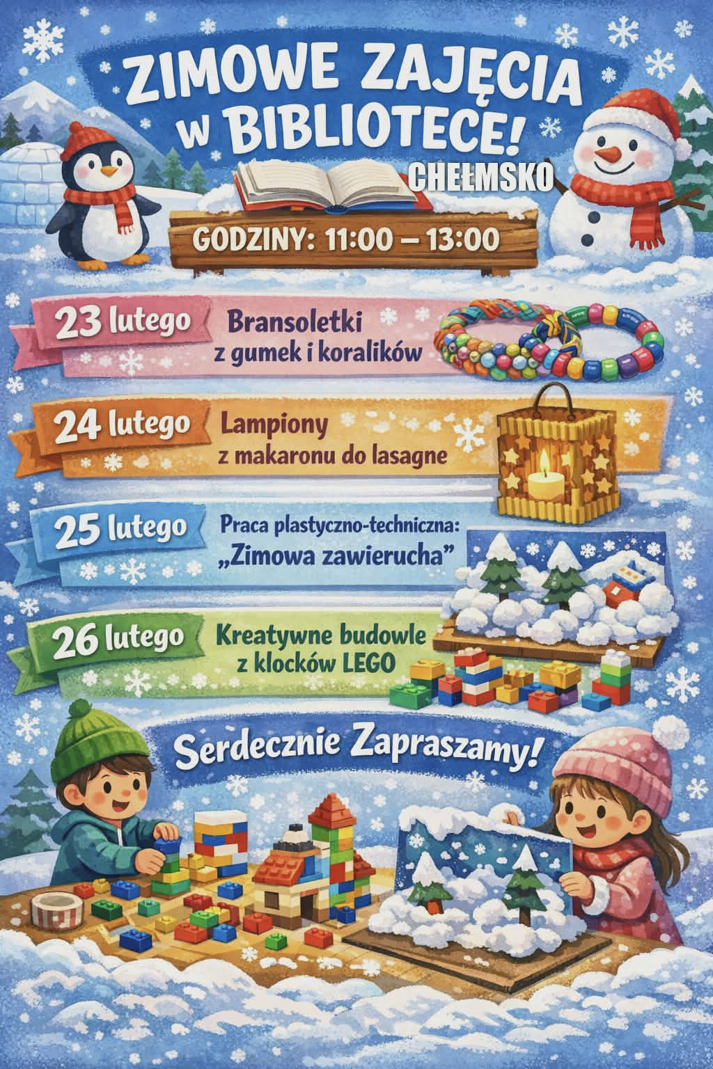 Serdecznie zapraszamy na zajęcia zimowe w bibliotece w Chełmsku!